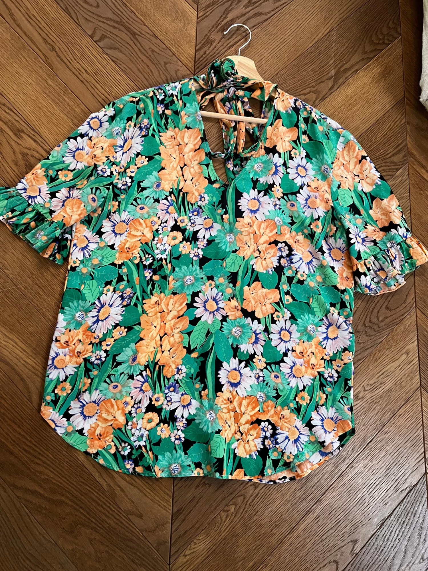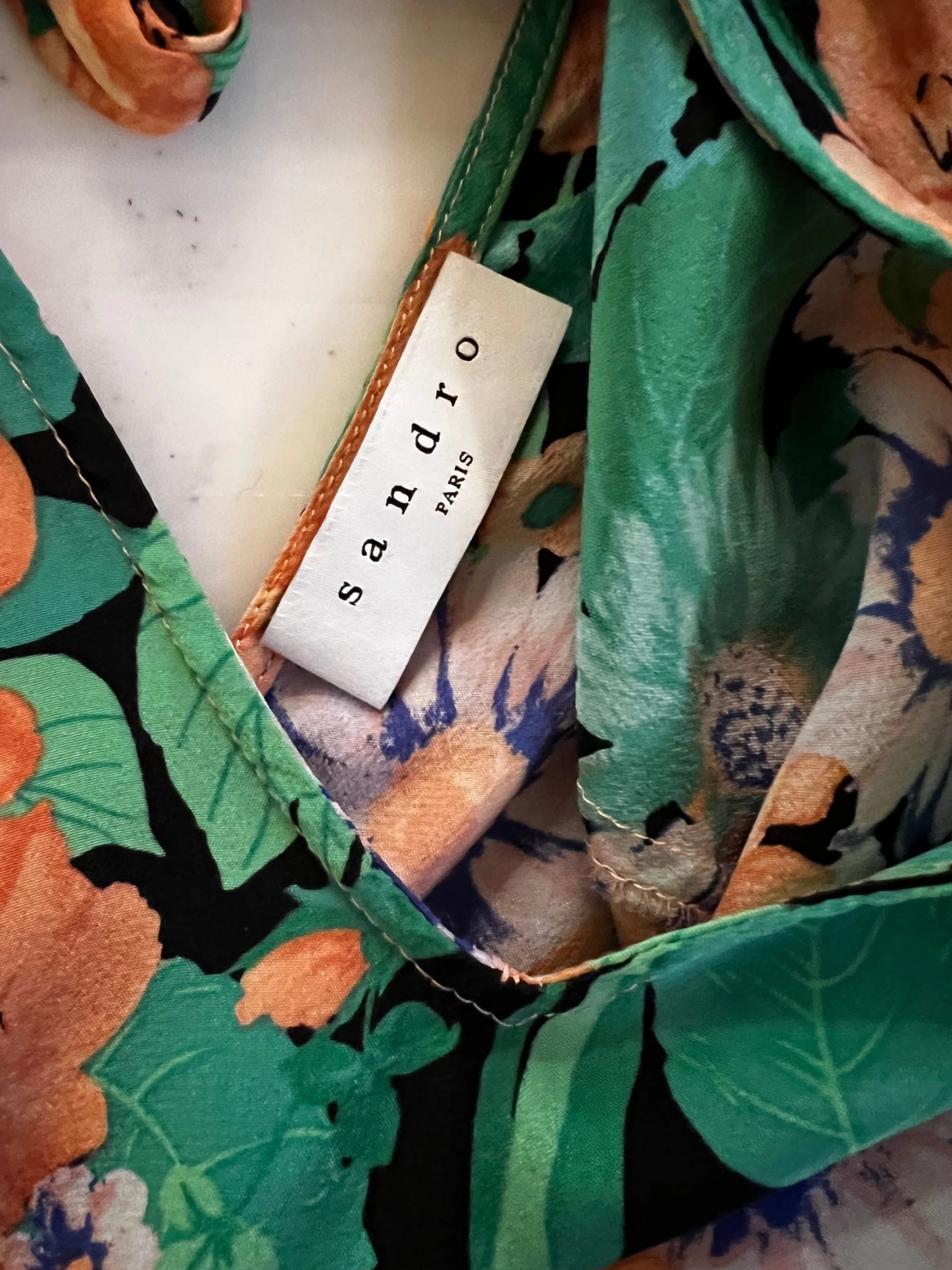 Blouse Sandro En Soie à Fleurs Vertes Et Oranges