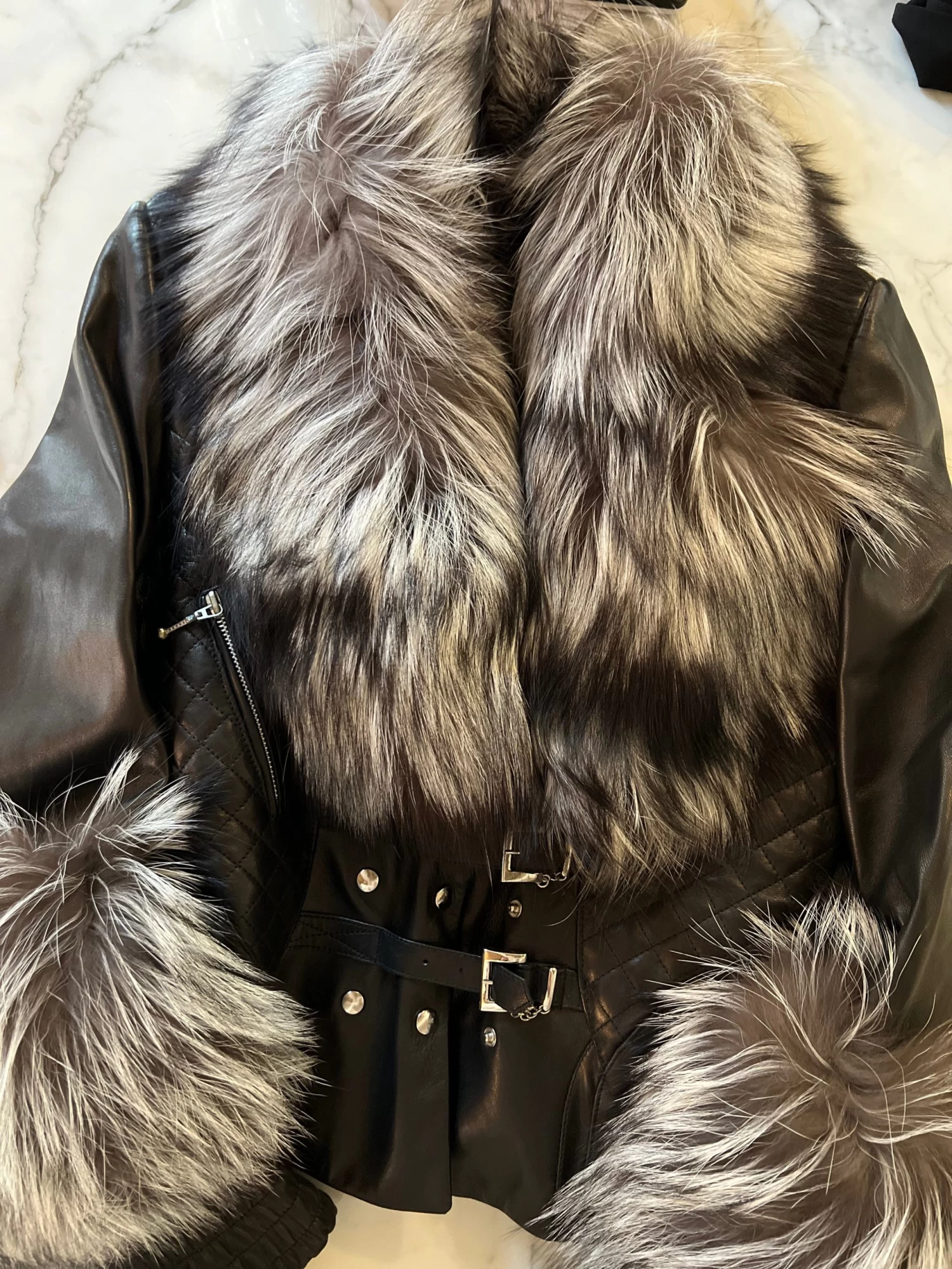 Blouson En Cuir Et Fourrure