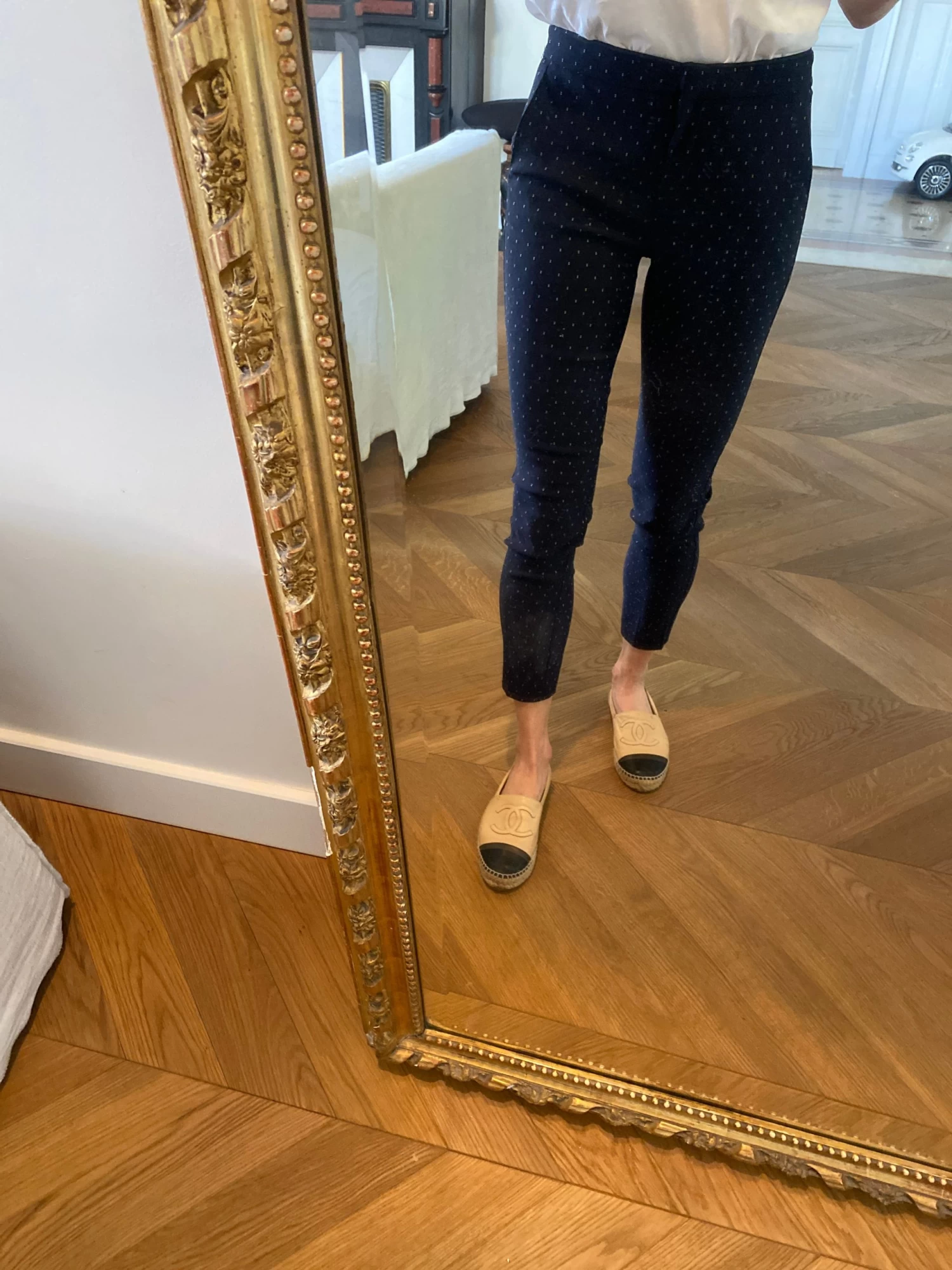 Charlotte Pirroni Pantalon Bleu Marine Zara à Petits Motifs