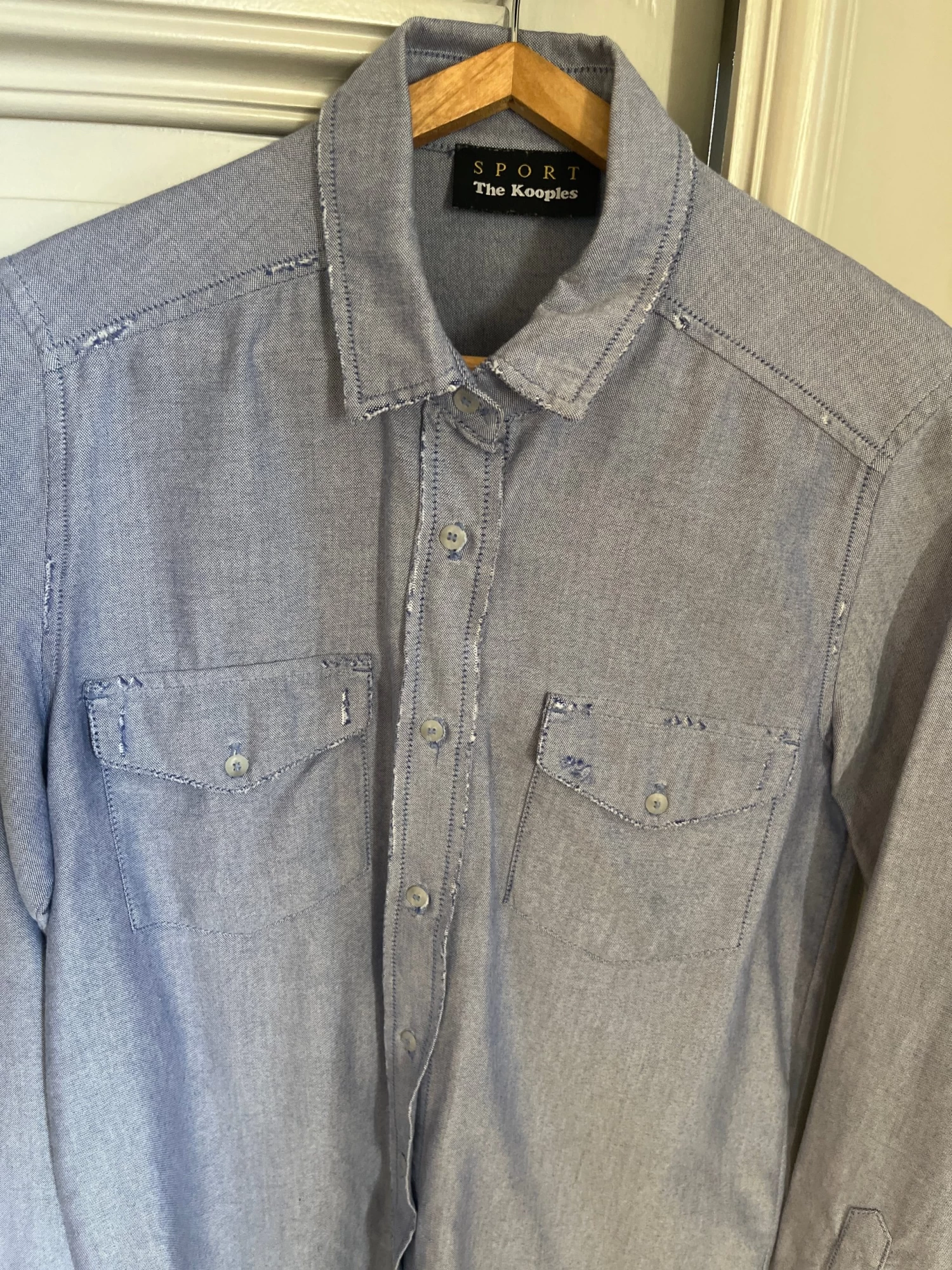 Chemise The Kooples Sport En Coton Bleue Avec Poches Effet Déchiré