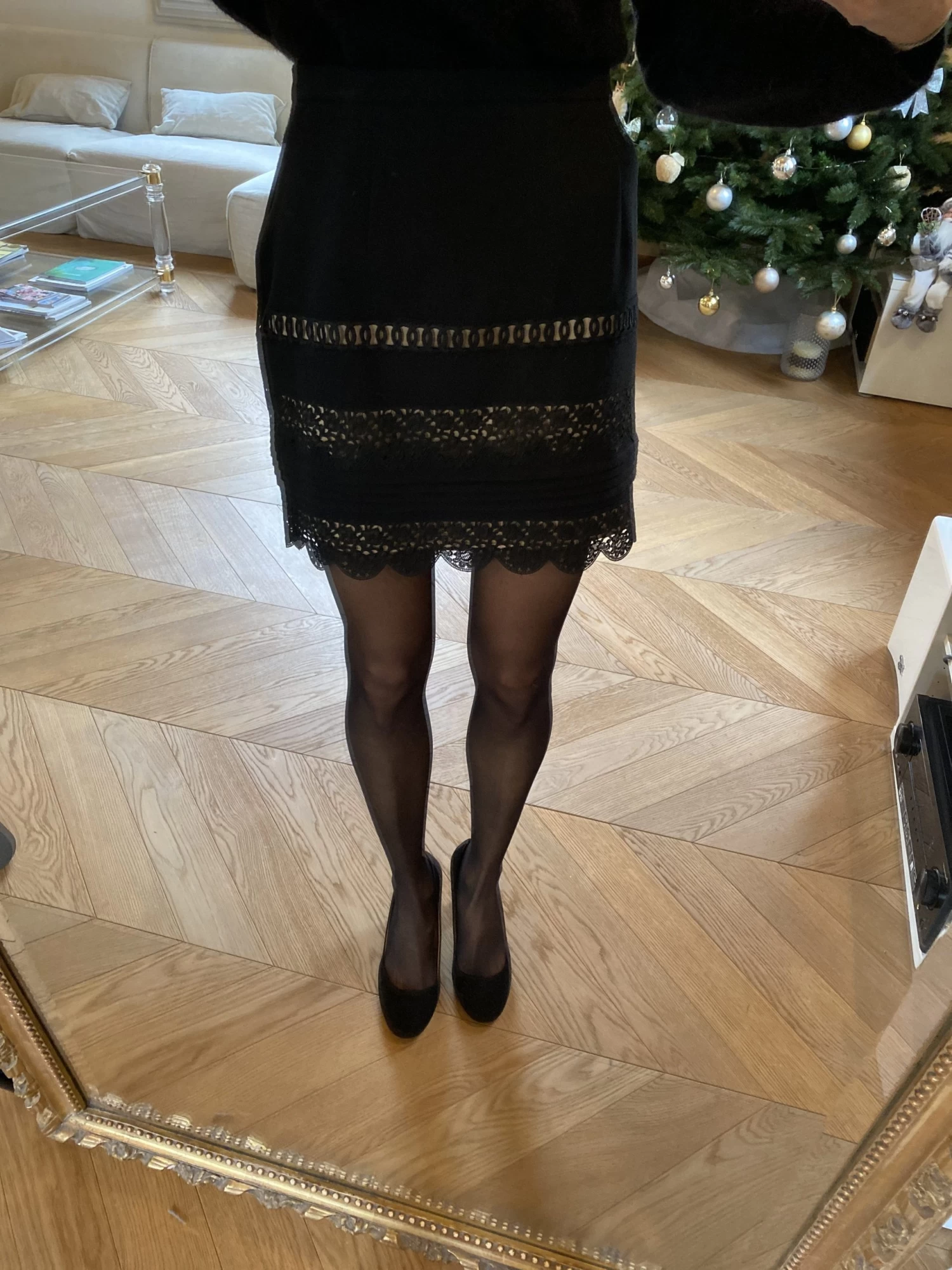 Jupe Sandro Noire Ajourée Rose Poudré