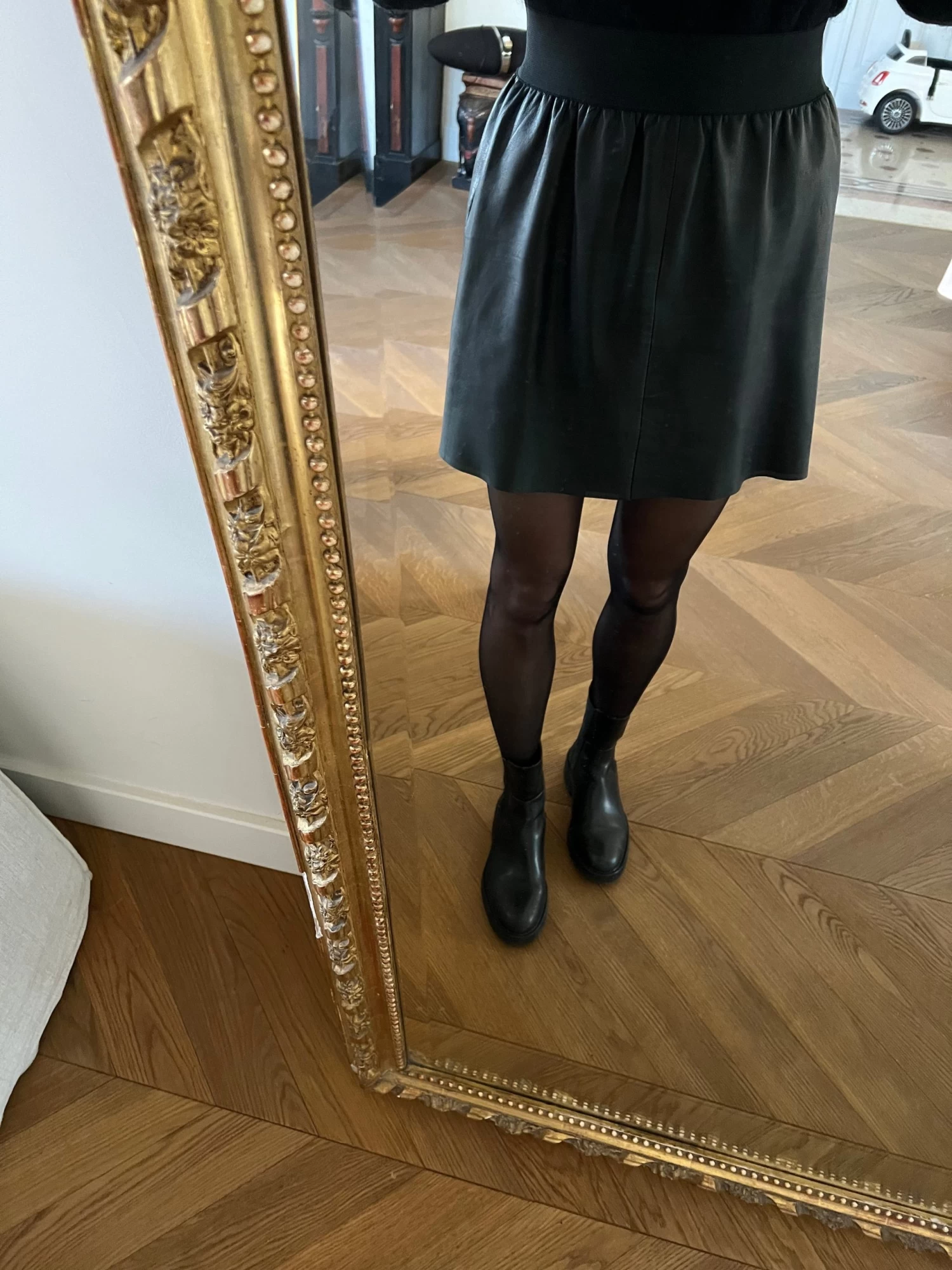 Lisa Jupe Sandro En Cuir Noir Elastique Taille