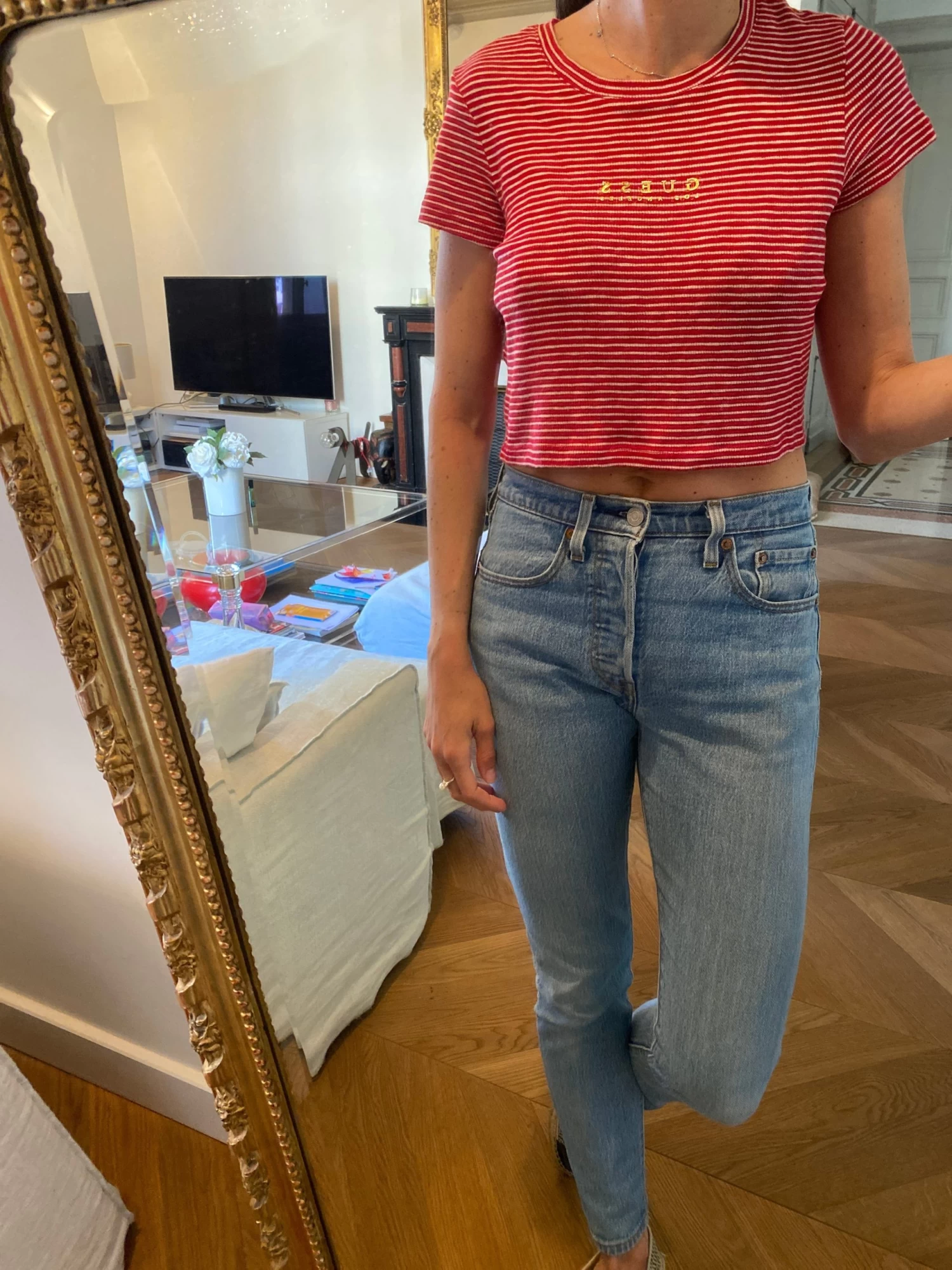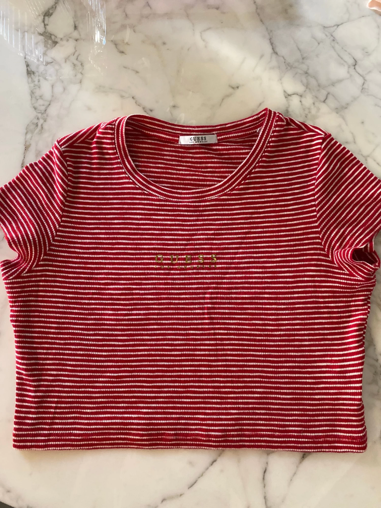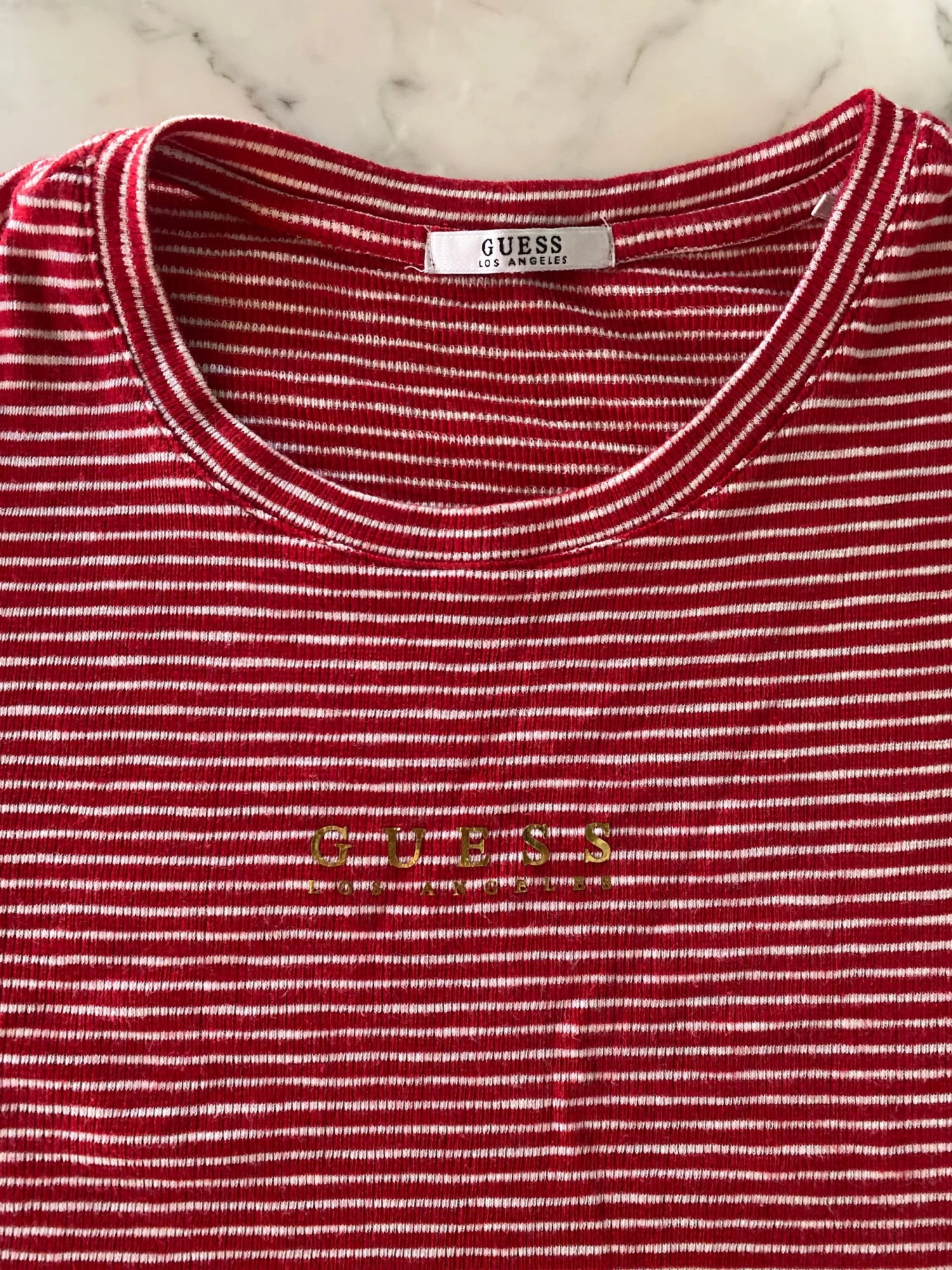 Marine Lorphelin Crop Top Guess Rayé Rouge Et Blanc
