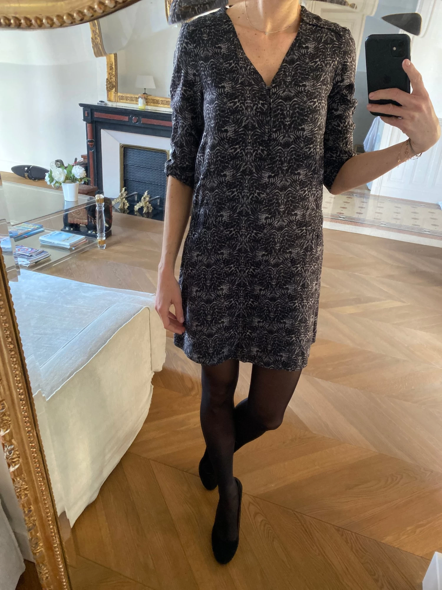 Robe à Motifs Comptoir Des Cotonniers Grise Et Noire