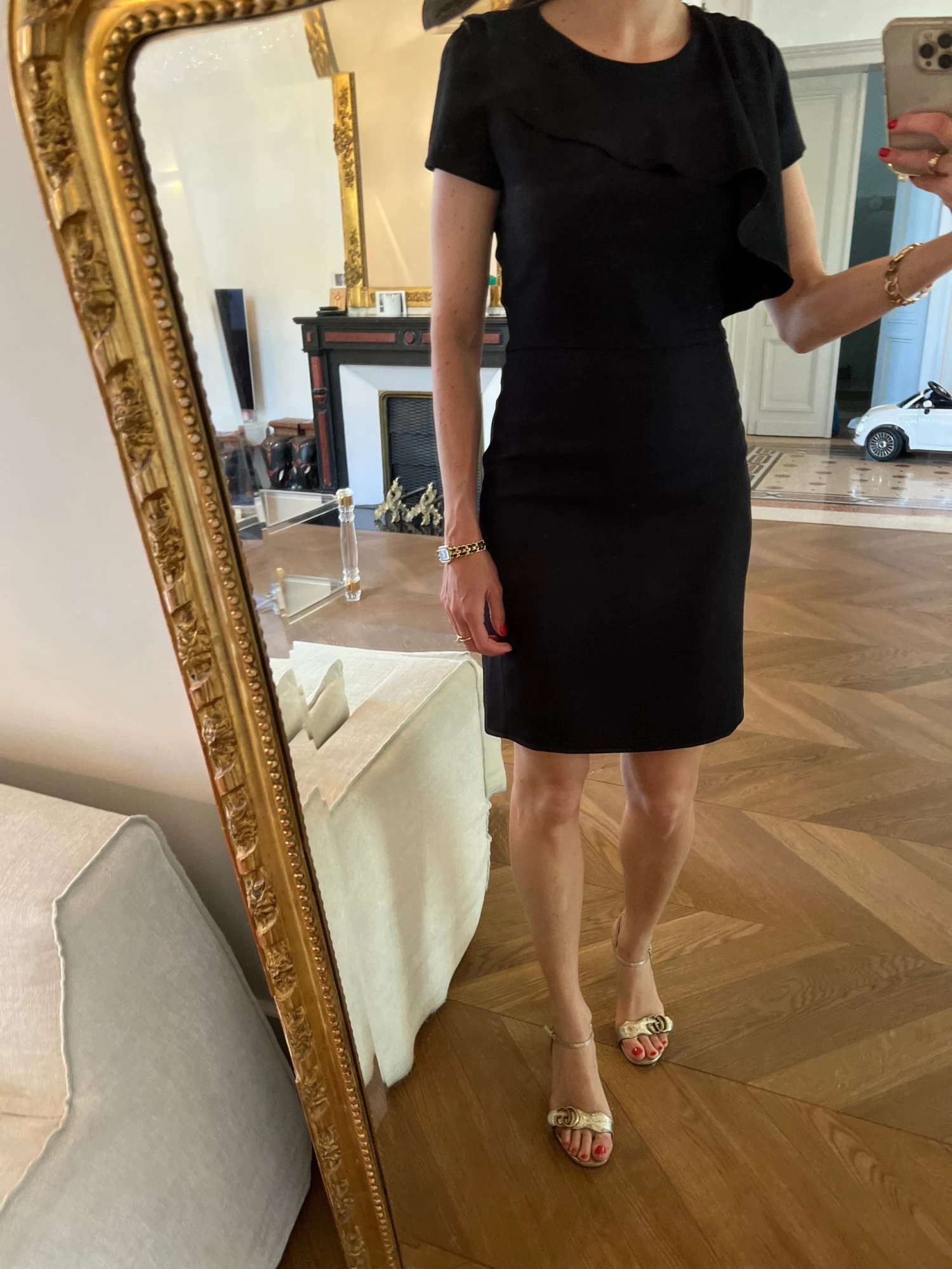 Robe Maje Droite Noire Avec Volant