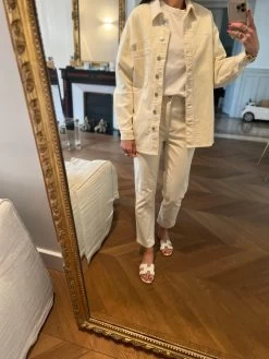 Ariane Brodier Ensemble Neuf Veste Et Pantalon En Velours Ecru Vila
